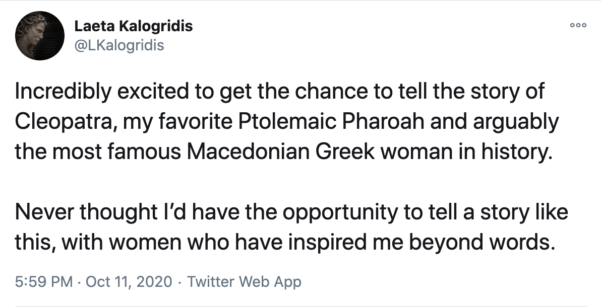 On October 11 2020, American screenwriter and producer of Greek descent Laeta Kalogridis posted this tweet: