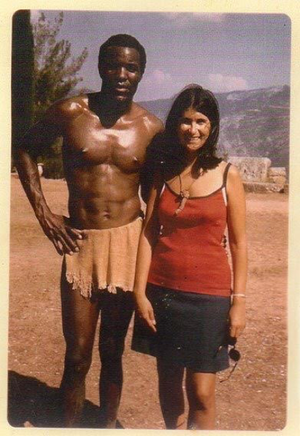 Figure 1: Judy Hallett with Olympic decathlete Rafer Johnson at Delphi, 1972. Image used by permission of Dr. Hallett.