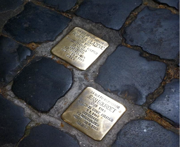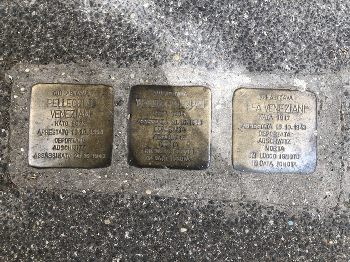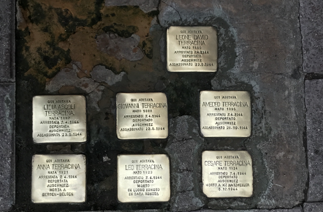 Header Image: Stolpersteine on the Via della Madonna dei Monti in Rome (Photo by Agnes Crawford and used by express permission of the author).