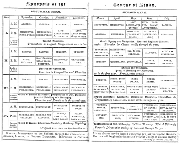 The oldest surviving UVM curriculum, 1835 (Image provided by the author).