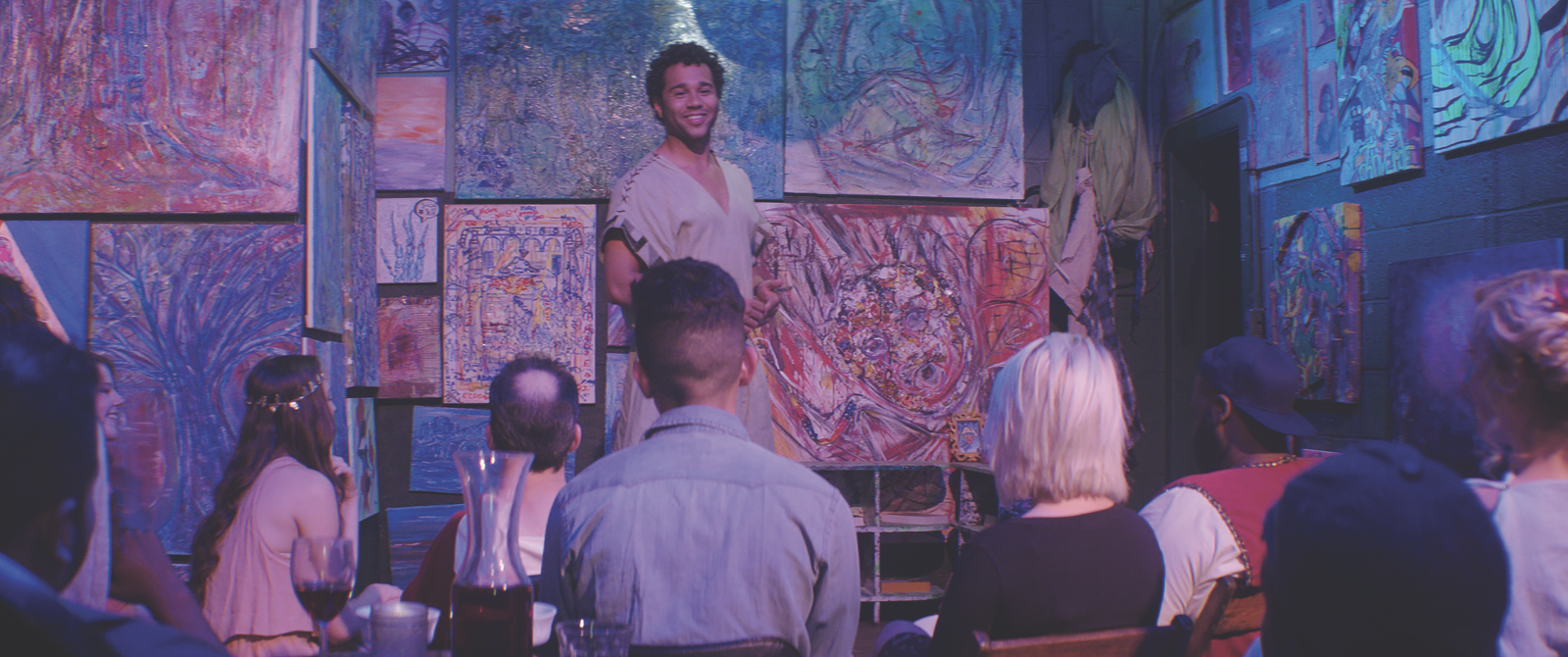 Figure 4: Corbin Bleu as Ovid performs at The Olive Tree, a slam-poetry club. Scene from Ovid and the Art of Love.