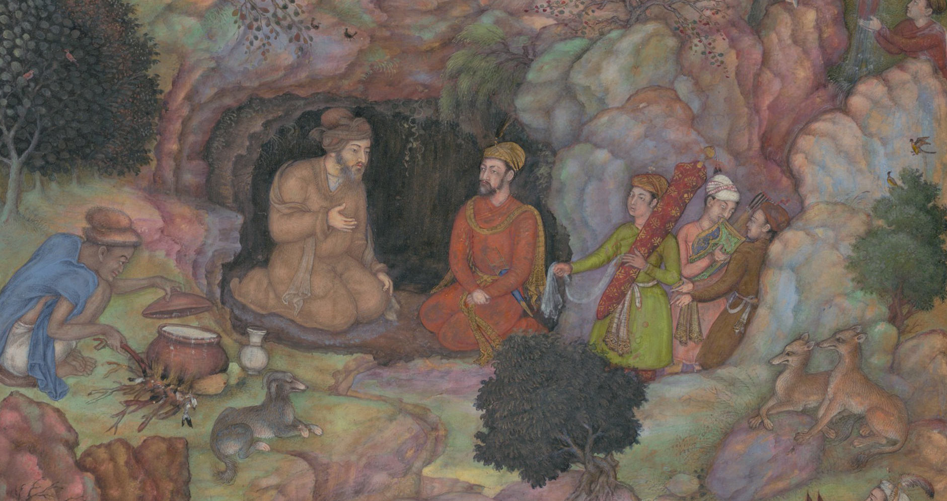 Image: "Alexander Visits the Sage Plato in his Mountain Cave" (detail), Folio from a Khamsa (Quintet) of Amir Khusrau Dihlavi (1597-98). Photo: © Metropolitan Museum of Art, New York.