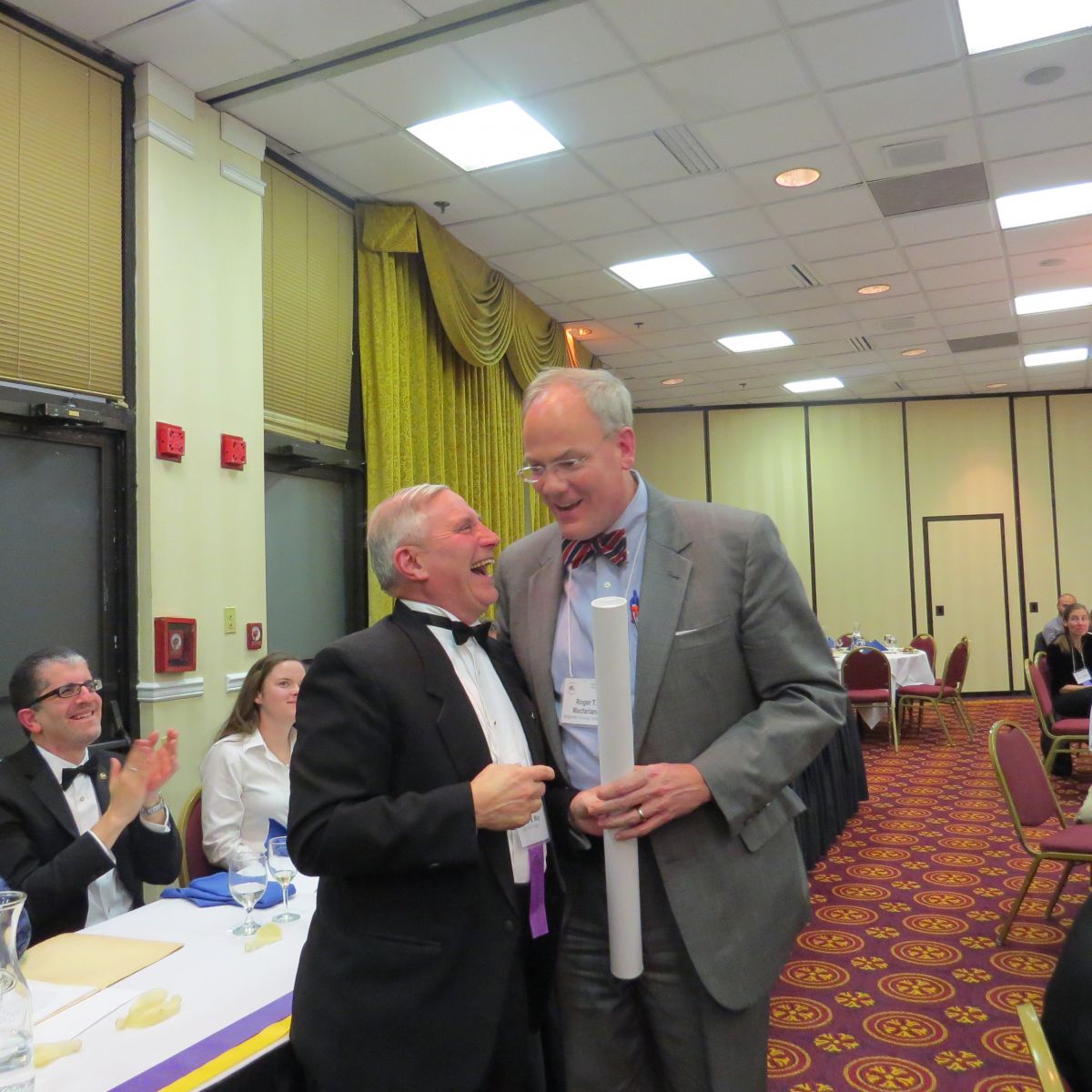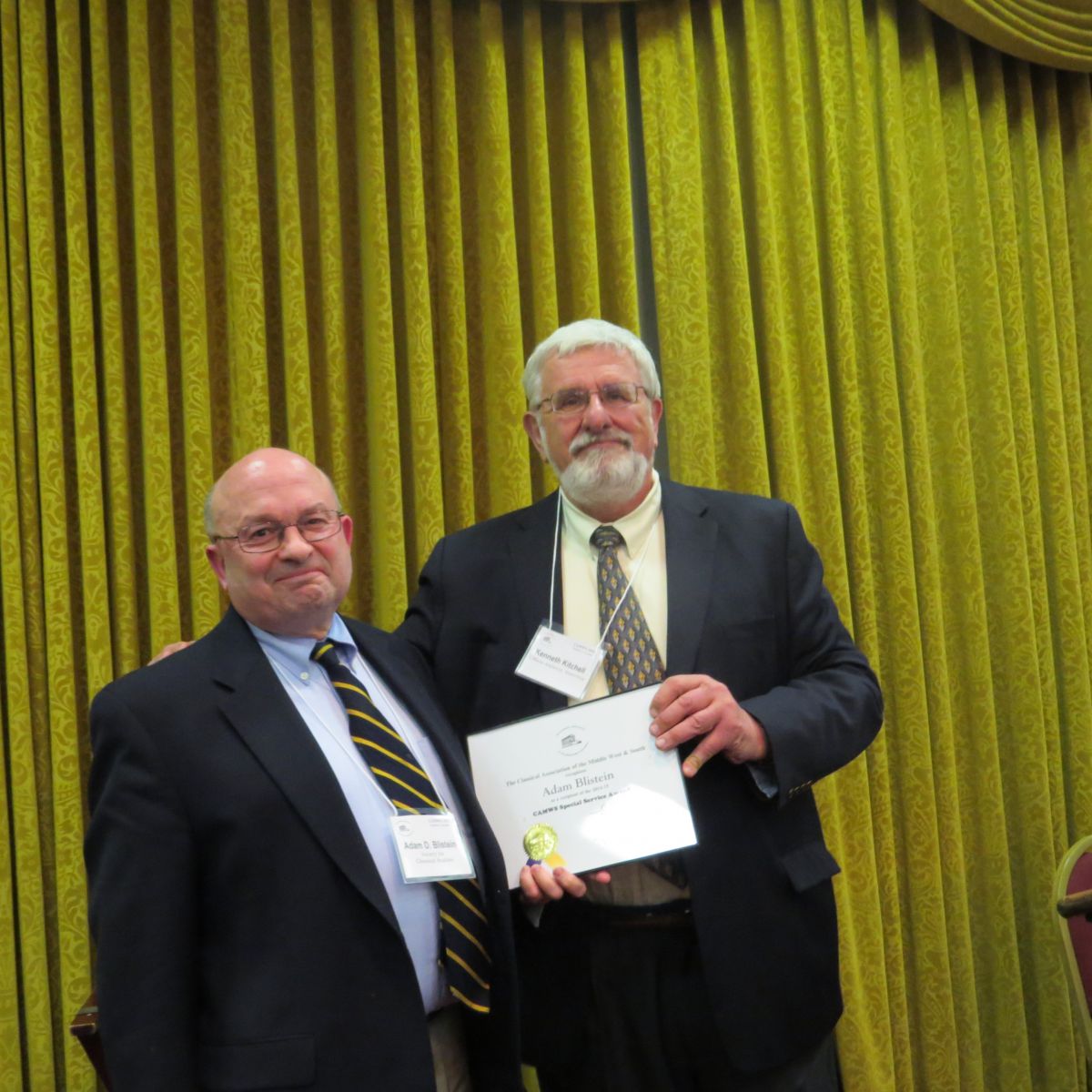 The photographs below, kindly provided by Georgia Irby-Massie, College of William and Mary, show Professors King and Macfarlane receiving their certificates from CAMWS Orator, James M. May, St. Olaf College, and Dr. Blistein with his nominator Kenneth Kitchell, University of Massachusetts, Amherst.